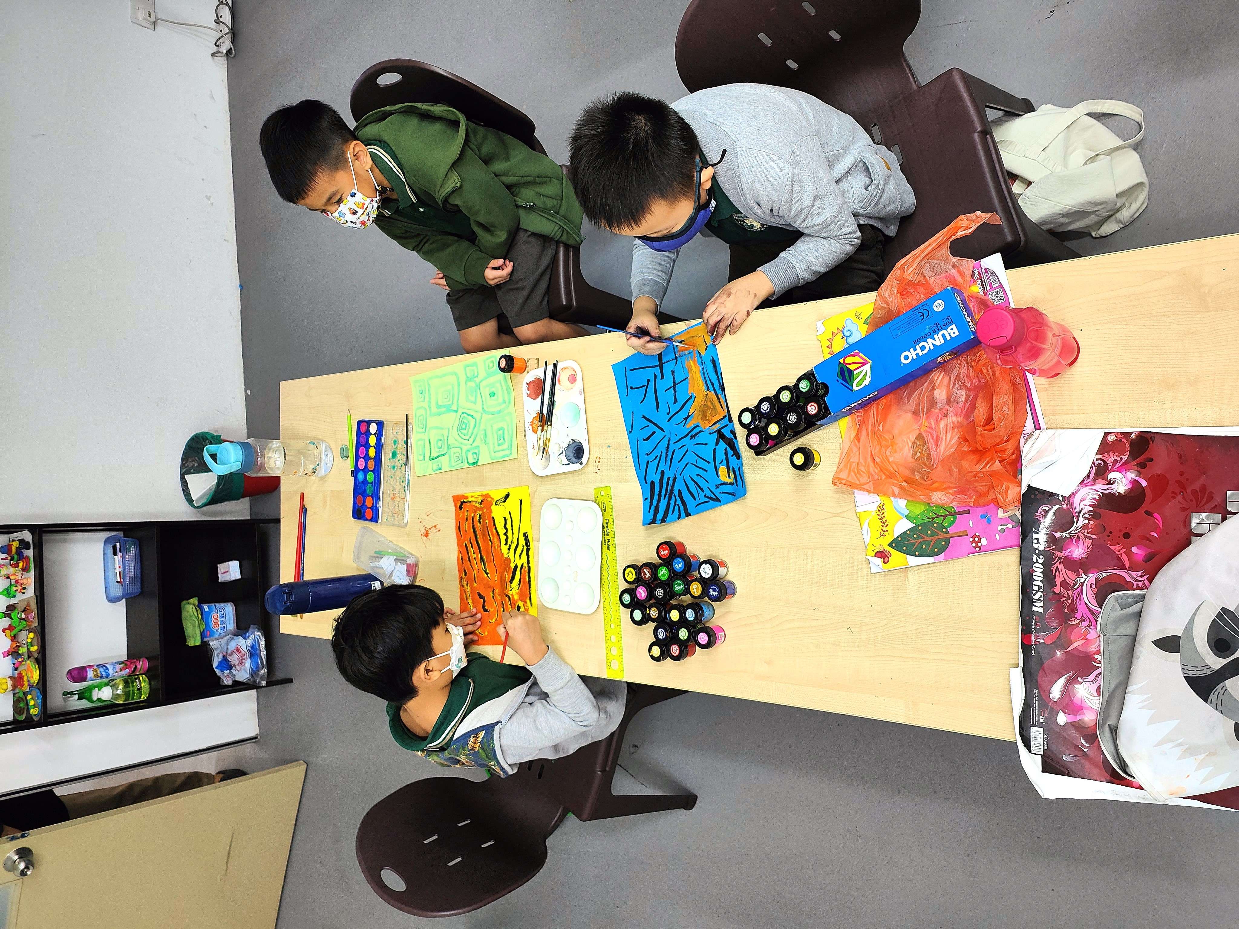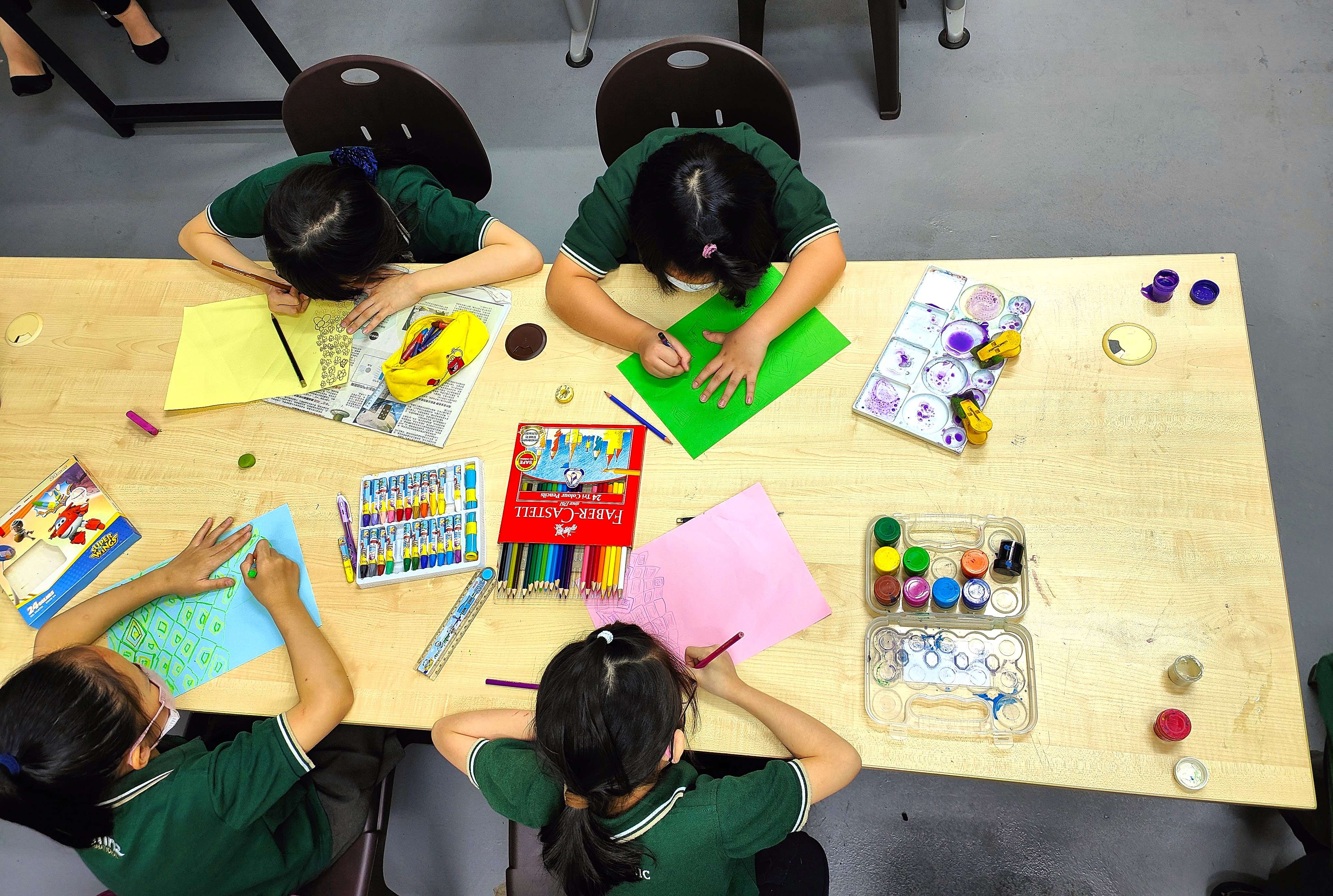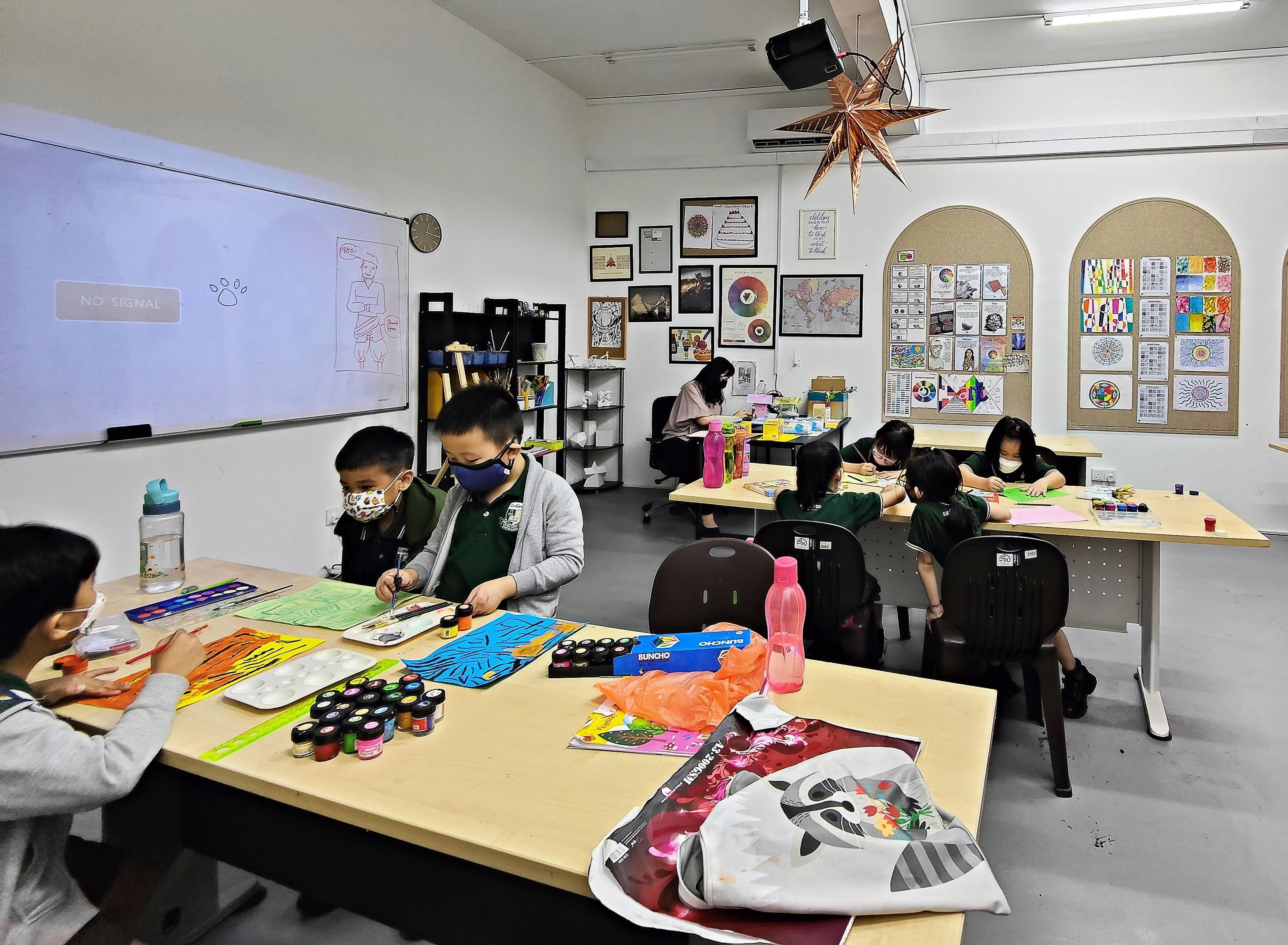 Students express their creativity through drawing and painting. Students' work is exhibited in schools.